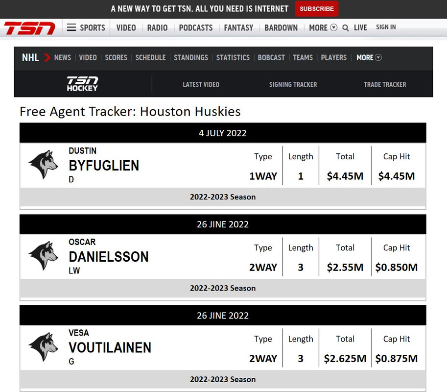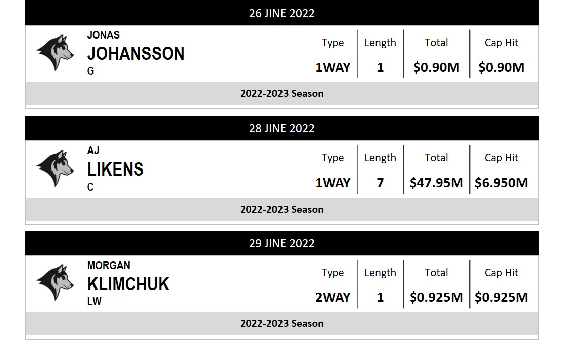 However, this year was a little different. Houston had a huge piece they needed to secure in AJ Likens, who ended up going from a entry level contract paying $875k per year to multiyear deal at $6.85m. Add this to the team’s desire to re-sign Nikita Scherbek ($5.6m) and pick up Dustin Byfuglien in free agency ($4.45m), there was little left to re-sign goalie Phillip Grubauer to an extension and he was allowed to walk. Houston would initially go with Jonas Johansson as their initial backup, a decision that would have a significant impact on the early season.