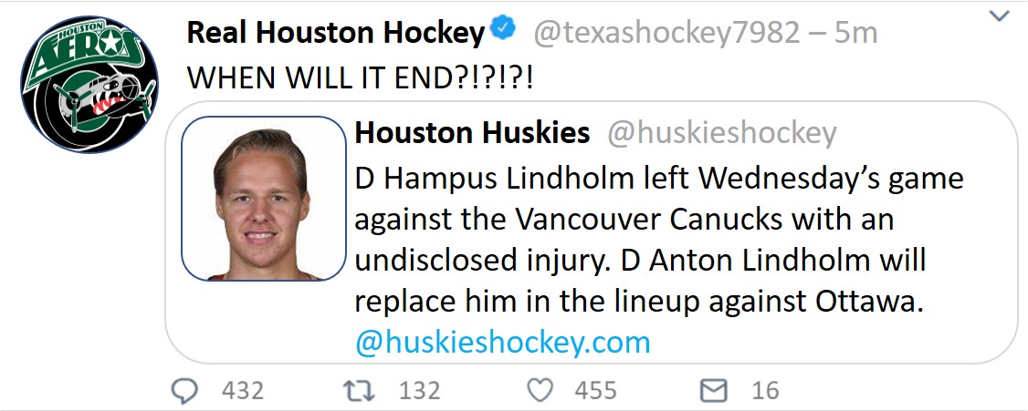 Another plus that won’t help the team this year but will soon is their amazing depth in prospects. Houston is ranked number three in the NHL for their farm system, with nine potentially elite players unsigned. They did sign two very highly regarded prosepcts this offseason: left wingers Georg Dreiber and Oscar Danielsson. Although Danielsson is earning his time in the AHL, Dreiber was called up to the big club after eight games when Eberle went down. Although he was only supposed to be in Houston until Eberle or Chartier recovered, his play was good enough that he was retained on the NHL roster.
