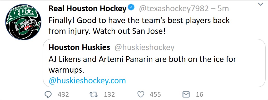 There is also some good news on the team stats side. Houston sits fourth in the NHL for goals for per game (3.11). Even more amazing, Houston sits first in powerplay percentage, having an unheard of 31.6% conversion rate, which is good for 42 powerplay goals this season (six more than the next team). In their last ten, the team has gone 7-2-1.