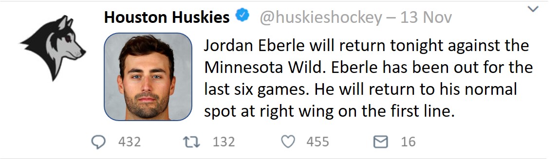 The Huskies first game will begin at 7PM EST/6PM CST. The Huskies first home game is Tuesday night at the Toyota Center. Puck drop is at 7:05 CST.