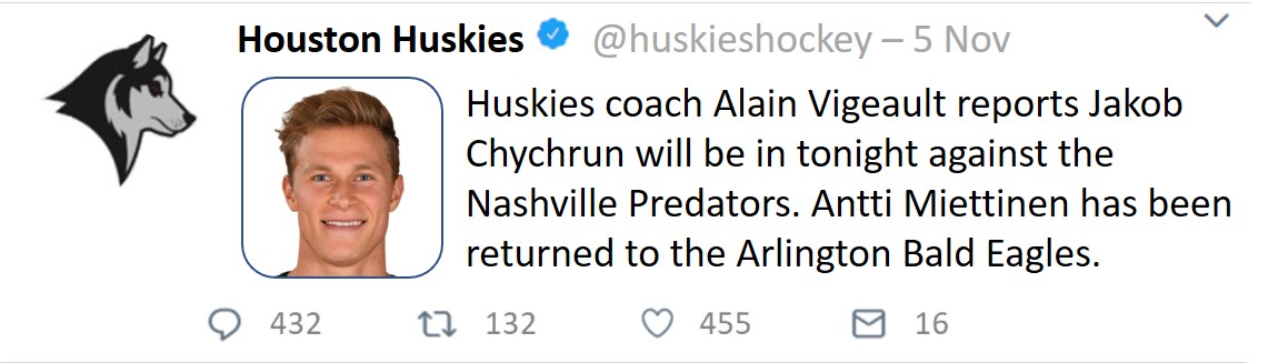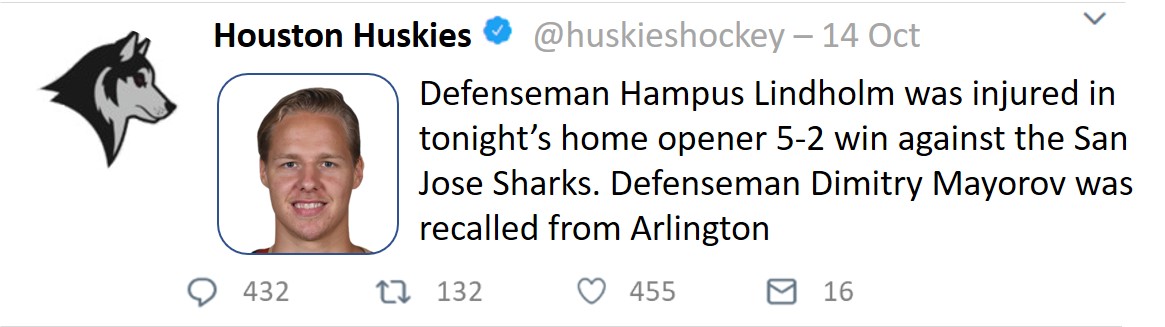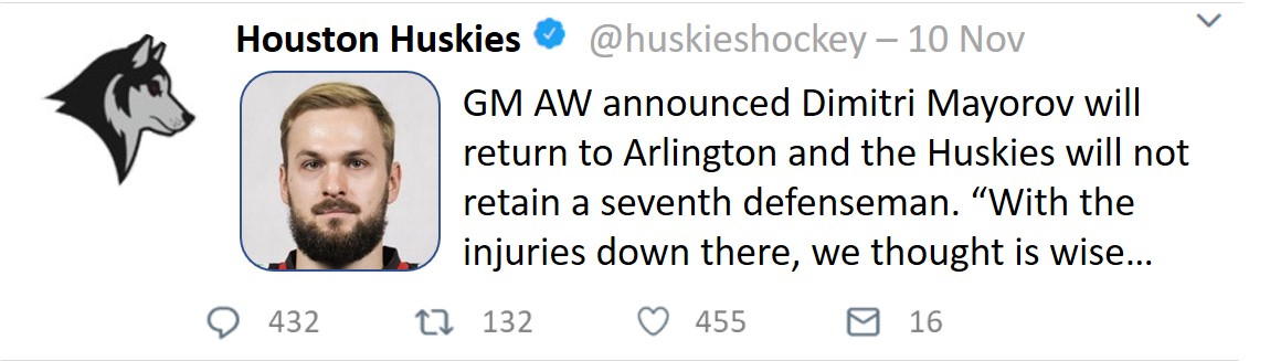 Also interesting to note is the Huskies’ farm team, the Arlington Bald Eagles. After missing the playoffs for three seasons, they made the Calder Cup playoffs and made it past the first round. Many of the same players are back and are pushing for their sniff at the NHL.