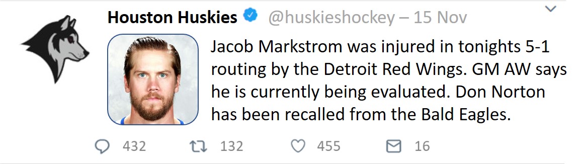 Although the team improved dramatically at defense and forward with a number of rookie signings and promotions from the team’s AHL affiliate, the Arlington Bald Eagles, it did leave a large hole in goal. The Huskies have a number of high quality prospect goalies in the farm system but none were ready to take the starting position this season. The team also didn’t feel that backup goalie Jakob Markstrom was solid enough to take the starting position. Therefore, the team went out an signed goalie Philipp Grubauer in free agency over the summer, hoping he would be able to backstop the team.