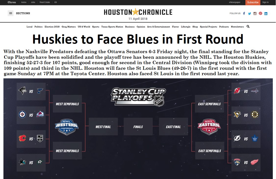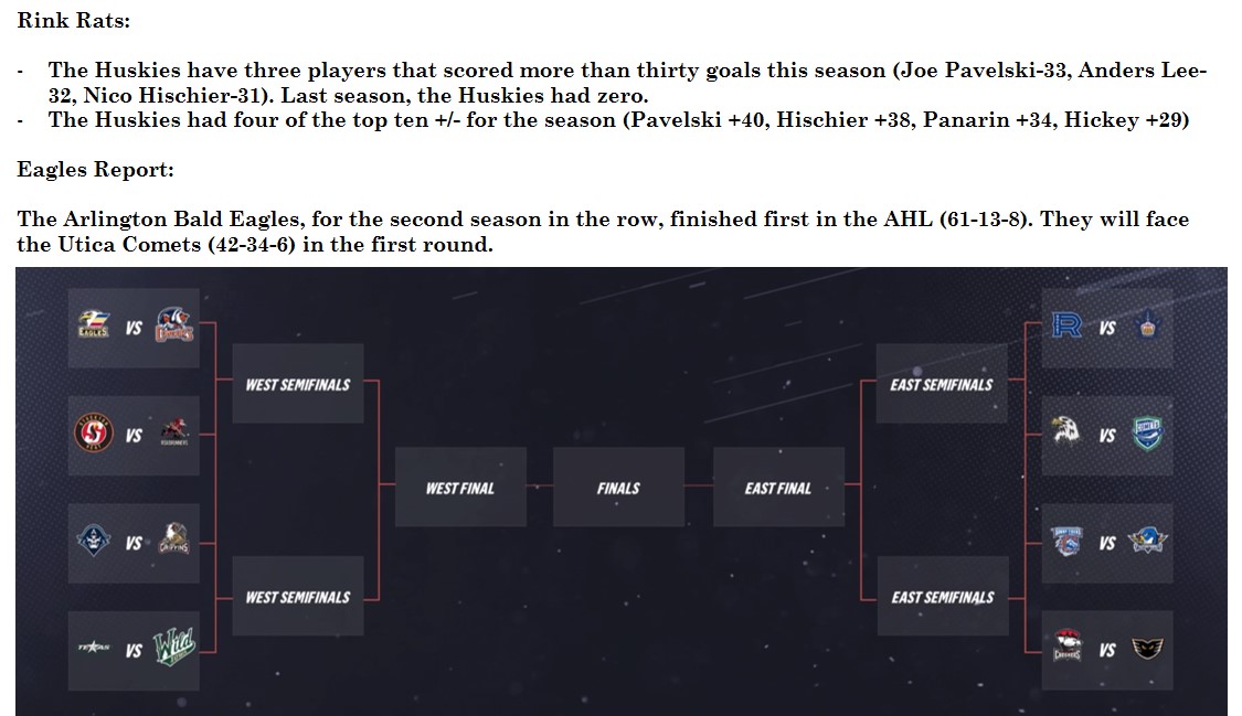 Huskies have a had a nice strong run home to the playoffs. Good luck, hope Big Joe gets another Cup