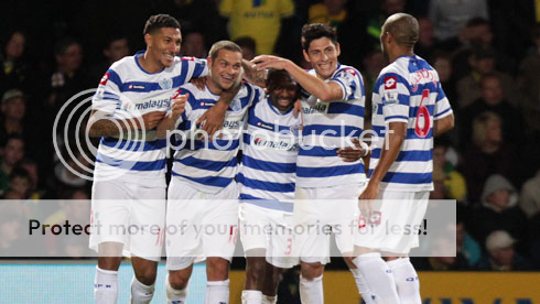 QPR celebrates their blowout victory over Swansea