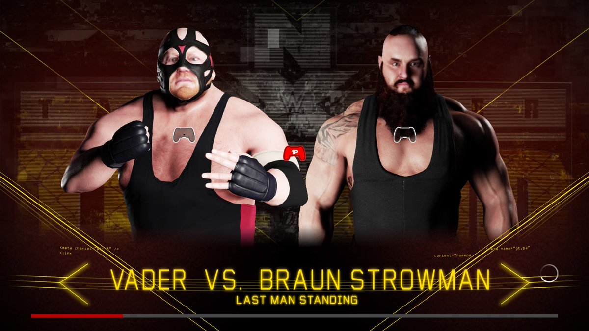 Last Man Standing Match: Braun Strowman def. Vader via powerslam on the floor backstage.