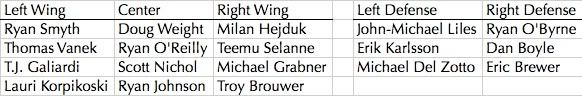 Injuries: We just got Radulov back from an upper body injury, and Sabotka came back in game 6 with the kings to score a goal and notch an assist after being out since game 4 at Vancouver when he took a slapshot to the head laying down to block a shot.