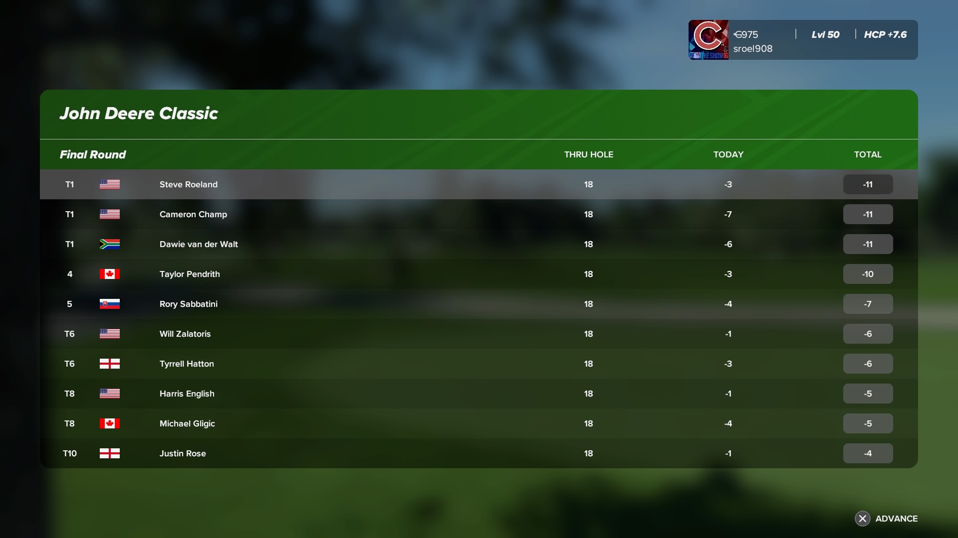 Sudden death playoffs in career mode are still bugged, even after this last patch...finished in a 3-way tie at -11 at the John Deere Classic, and had no playoff. Ended with me getting the trophy and the win, even though this was the leaderboard: