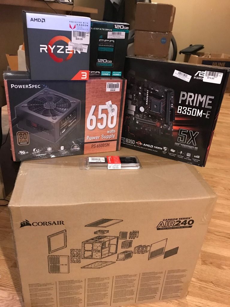I picked up the Ryzen 3 2200g today for my office build. I don't plan to do any gaming on this system, it is going to primarily be for productivity and online business sales work. I hope that this thing can do what I need it to do. I pretty much paid about $480 for everything, not including the monitors I still need to pickup. The case cost me close to what I paid for the RAM, probably could of gone for a cheaper one but have always liked the Air 240 which I've built my kids PC in and my i7/1080ti gaming rig is in a Corsair 460X.