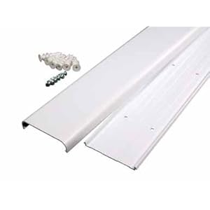 I was thining of taking a 2x4 and passing it through a shallow blade on a table saw over and over again to hollow out the middle (or just buying a few pieces of 1x and making 3 sides of a box) and then painting it to match the walls and then running everything through that...but I still have to figure out a way to securely mount it to the wall.