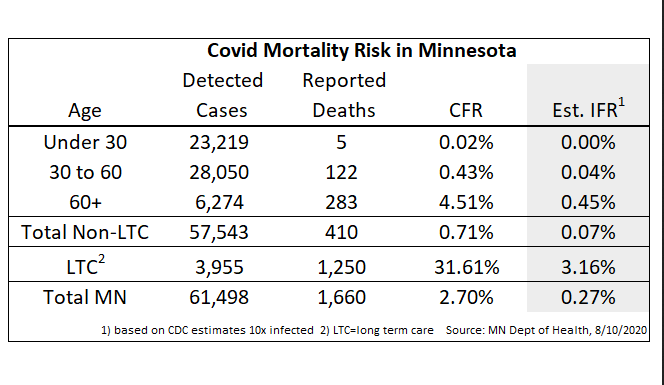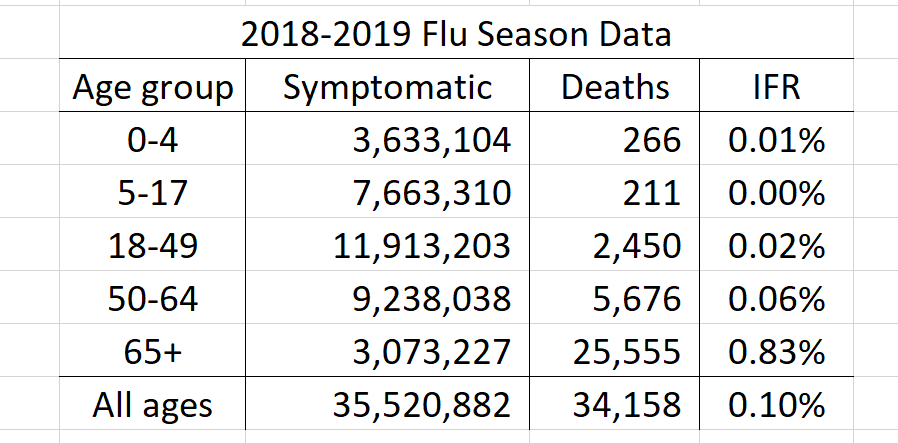 One other thing to remember when we think about how the 70+ bracket is driving a large part of the overall IFR or talking about the reported infectiousness of younger people; we can't forget that 164k people have died since early March from Covid in the US. I'm not saying that to humanize the statistic or appeal to any sense of emotion. Just from purely analytical standpoint that puts it in a scope that we have not seen in this country, at least not in my life time. I don't mean to rehash the covid vs. the flu argument, but it's a convenient point of comparison here. The flu doesn't kill half that many people in the worst of years. Also, when we're talking about the flu, we do not take the kind of wide spread preventative measures against it that we have against covid for the last 5 months which makes that 164k number even more scary.