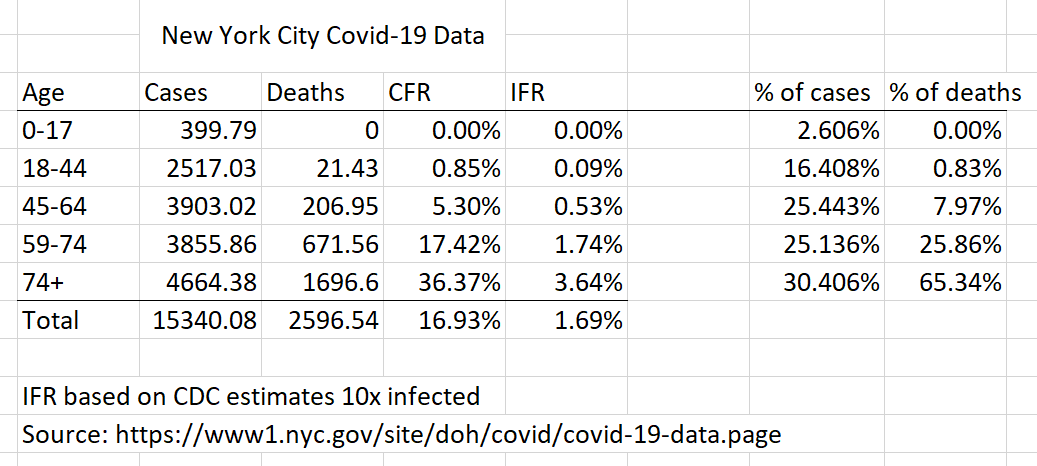 Just for comparison, here is the numbers for NYC, obviously the place in this country that has been hit the absolute hardest. I used the same CDC estimate for the 10x infected. I also will share the link for the NYC data that was pulled straight from the .gov sit itself. The data was updated as of today, August 11th, at 1:00 pm est.