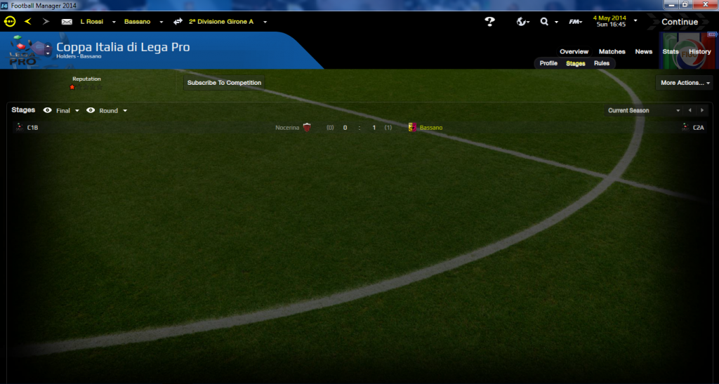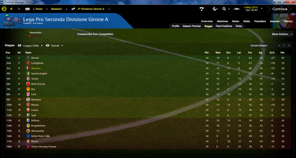 Decided to finally start my lower league management save, I picked Bassano Virtus 55 S.T. They play in Lega Pro Seconda Divisione, which is in the 4th tier of Italian Football. They are owned by the "King of Casual" and founder of Diesel fashion Renzo Rosso. In my 1st season I was promoted to Lega Pro Prima Divisione and also won Coppa Italia di Lega Pro.