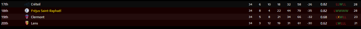 Kind of an oddity, though: Liverpool sitting in the relegation zone (a year after Everton were relegated). 13 goals in 21 matches, and only 20 allowed. So apparently they're parking the bus and trying to win every game 1-0, haha.