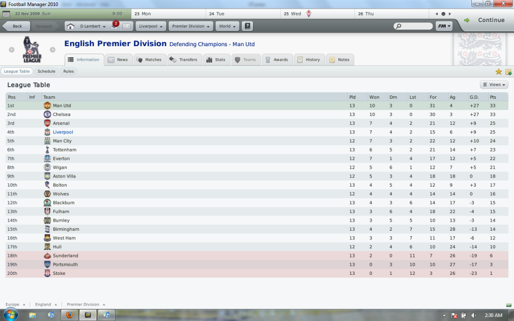 I'm pretty happy with this considering I'd lost Torres for 5 weeks and Gerrard for a week. N'Gog stepped up along with Dirk Kuyt to help keep me going strong. That's not to say we didn't lose some we shouldn't have though