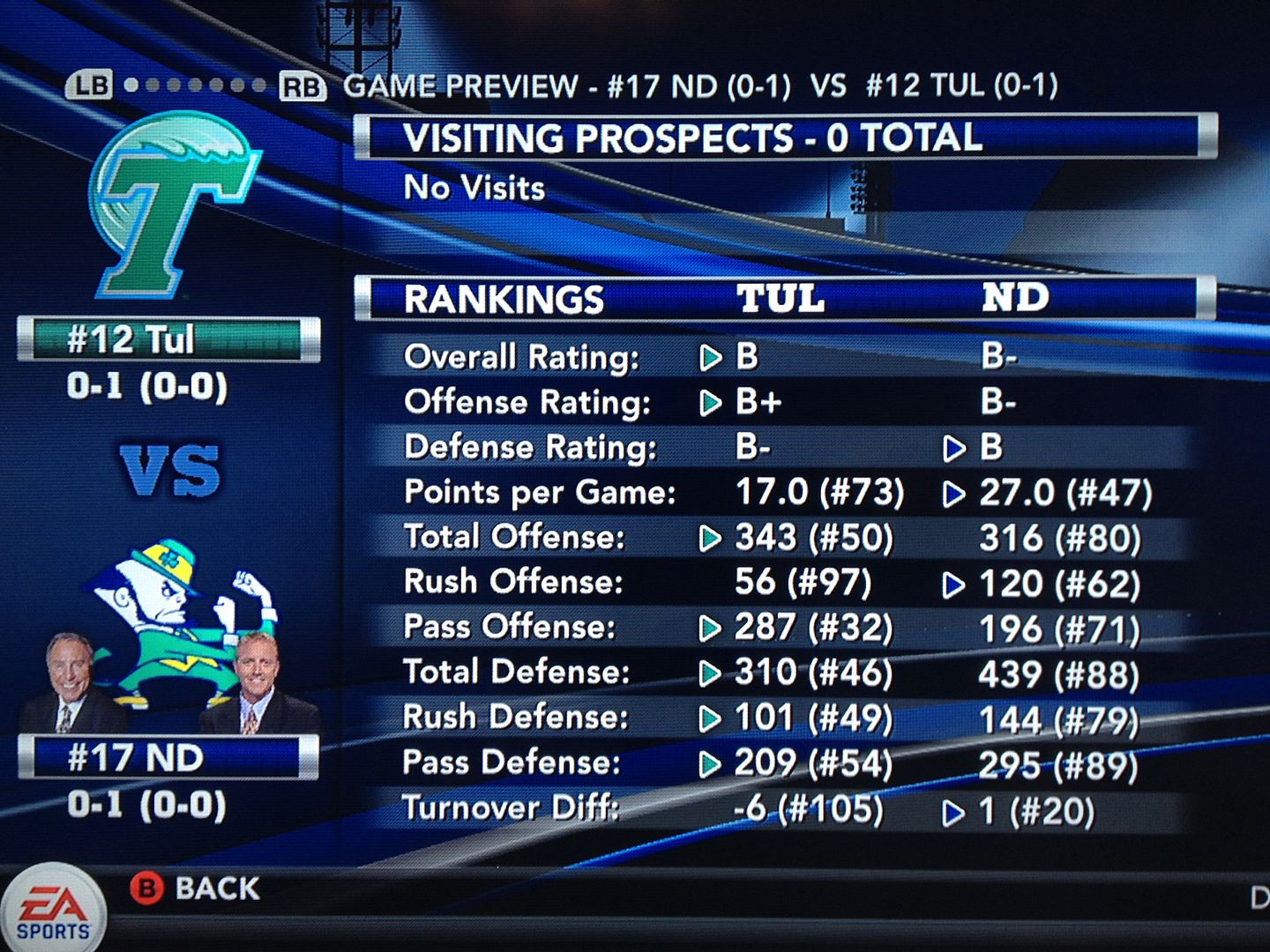 : After going into the season ranked #5 in the Preseason Coaches Poll Notre Dame finished the 2022 season with a 9-3 record and ranked #17 in the final Coaches Poll after deafting unranked Ohio 26-21 in the GMAC Bowl. The Fighting Irish hopes to return to national prominence after hauling in the #1 rated recruiting class in the nation this past February, including the nation's #1 rated running back, Eric Banks (82 ovr) and the nation's #1 rated wide receiver, Anthony Robertson (81 ovr). The team returns only 4 starters on offense and 4 on defense from last season.
