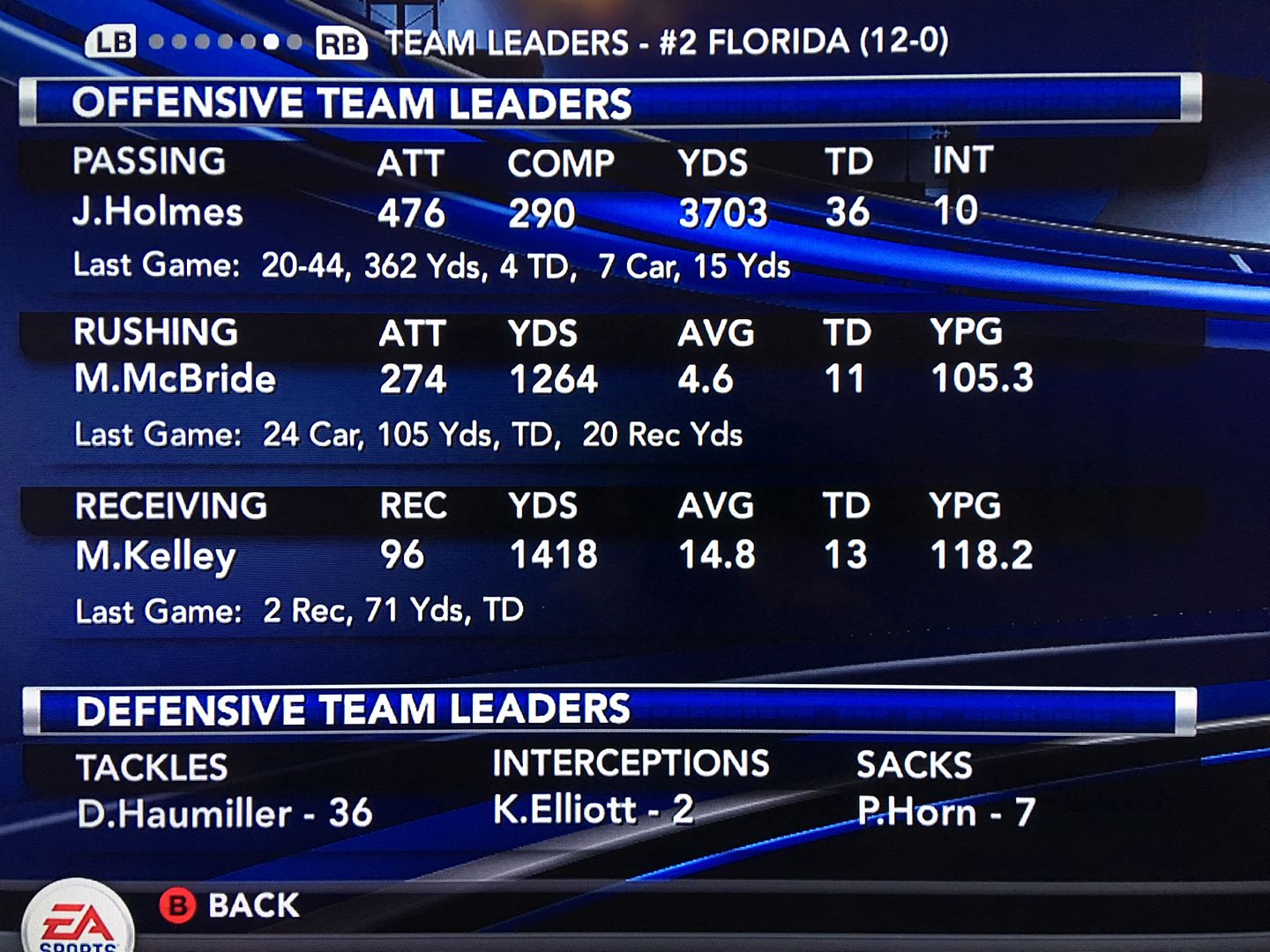 2. 10-QB Joey Holmes (rs-sr): 290 of 476, 3,703 yds, 36 tds, 10 ints | 145 car, 346 yds, 5 rush tds